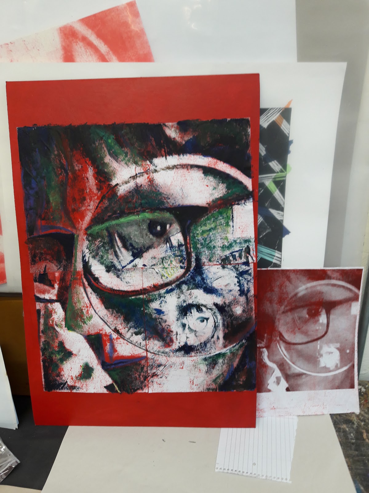 My primed red board, as an imprimatura for my self portrait.